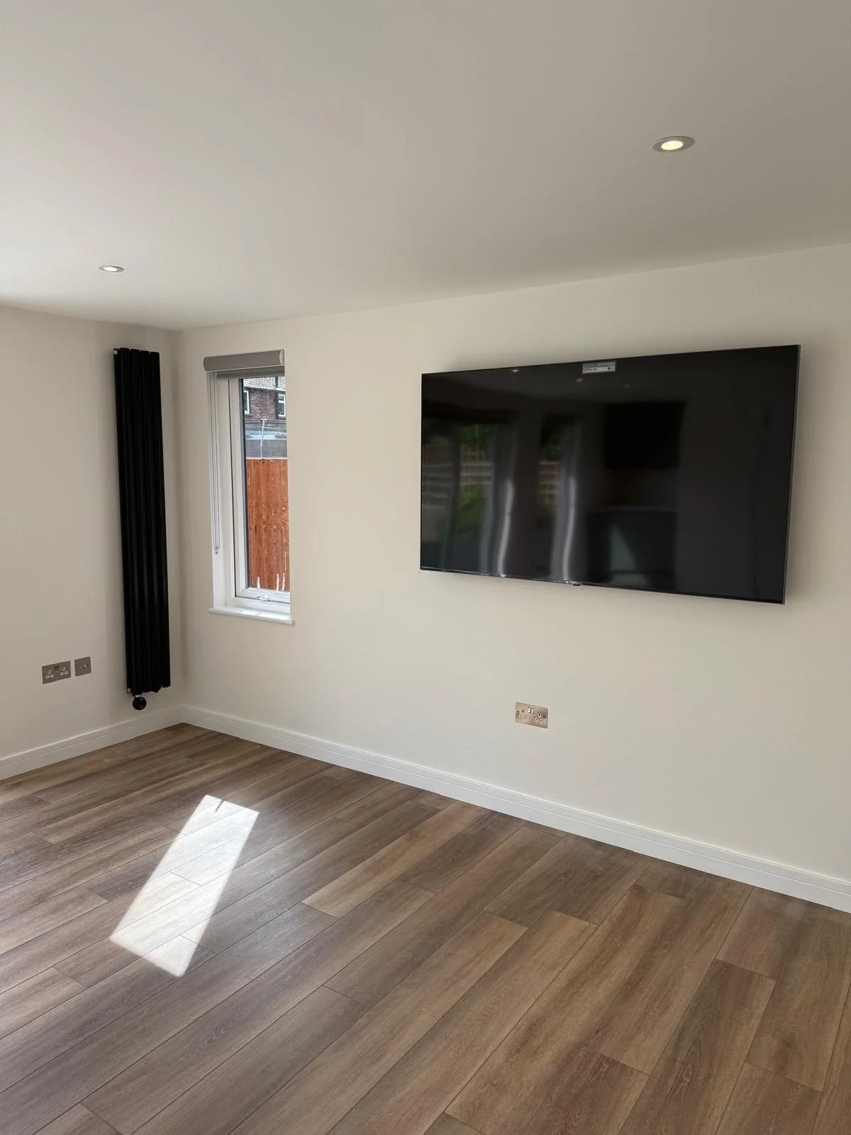 With wide-plank wood-effect flooring, integrated lighting, and clean architectural lines, the space flows effortlessly—designed to feel like a natural extension of the home. The large windows and sliding doors invite natural light, while high-end finishes and bespoke cabinetry deliver timeless appeal.