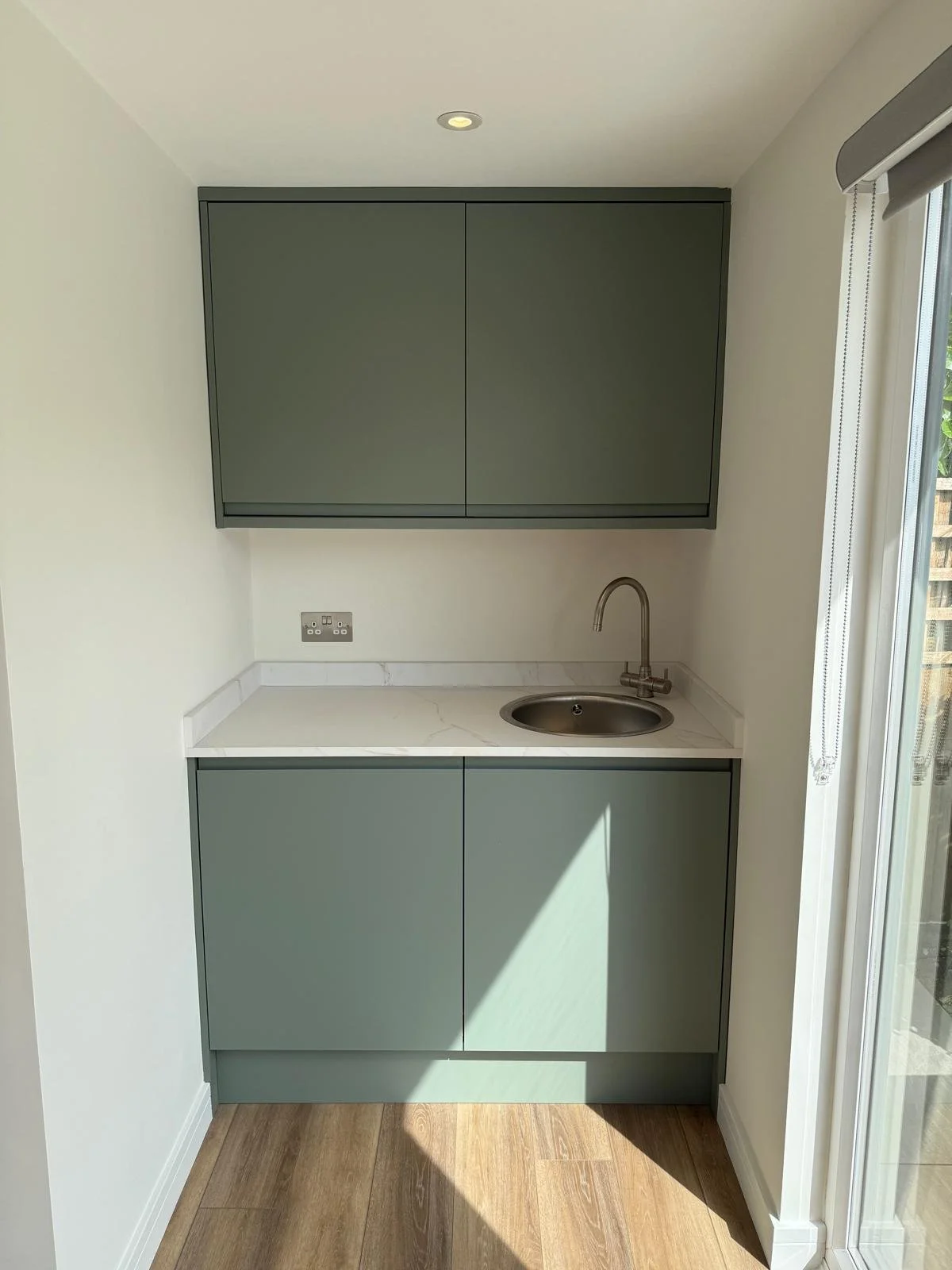 This beautifully executed fully insulated garden room with bathroom in Weybridge, Surrey is a showcase of Optisoul’s uncompromising approach to design, comfort and craftsmanship. Thoughtfully created as a multi-functional guest suite, it offers year-round usability with premium insulation, a sleek en-suite bathroom, and a stylish kitchenette for self-contained living.